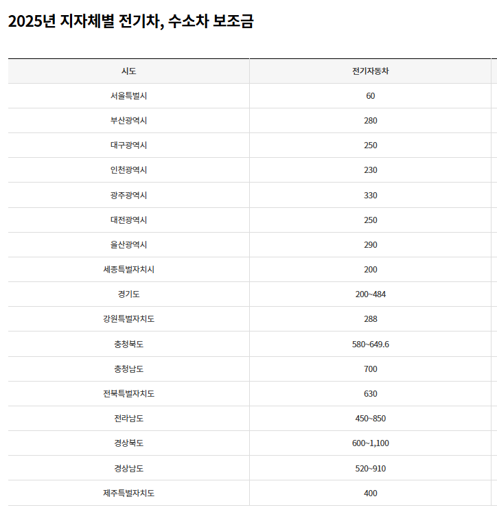그리고 이번에는 천차만별인 지역별 보조금 알려드릴께요. 아래의 표를 보시면 서울이 가장 짜죠. 이에 반해 경북이 가장 지원금을 많이 주네요. 한번 보세요. 지금 여러분이 거주하고 있는 곳은 얼마를 주는지.
